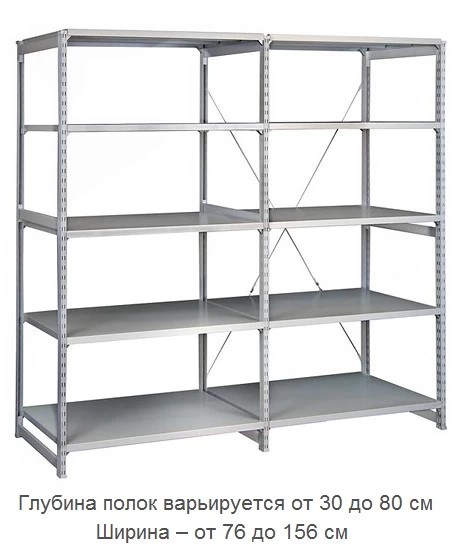 - Металлические полки стеллажа отличаются высокой надёжностью. Максимум распределённой нагрузки на одну полку – до 150 кг, на весь стеллаж – до 1800 кг.