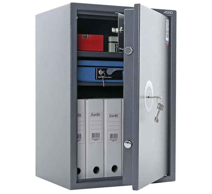 Рассчитан на хранение относительно небольших сумм (до 50 тыс.руб.) и документов в офисе или дома. Приобретая этот сейф, вы обеспечите своим ценностям приемлемый уровень защиты по недорогой цене; однако его уровень взломостойкости не даёт гарантии от профессионалов взлома, поэтому предпочтительно устанавливать TSN.65T в помещениях, где предусмотрена охрана.Aiko TSN.65T изготовлен из прочной стали и снабжён качественным ключевым замком Border, защищённым от внешних воздействий твердосплавной пластиной; внутри сейфа располагается съёмная полка. Также данная модель подходит для хранения короткоствольного оружия. Качество сейфа обеспечивается сертификатом соответствия ГОСТ Р 55148-2012: класс S1 (ГОСТ Р).